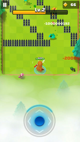 操作机制极为直观:按住屏幕即可激活虚拟摇杆,滑动控制角色移动;松开手指后,角色会自动锁定并攻击距离最近的敌人,整体玩法呈现出典型的“打带跑”(Hit and Run)策略。