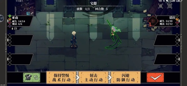 第五关使用枪械作战:先装备枪械,进入主动行动模式,选择“射击”,点击目标状态栏,并多次点击以提升射击次数(有上限限制)。