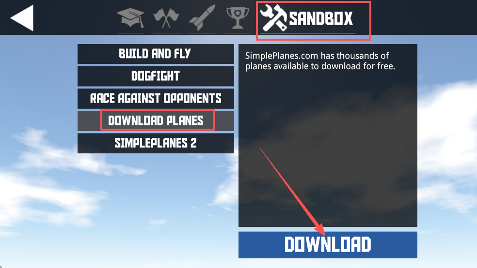 2、进入后选择“Sandbox”,再点击“DOWNLOAD PLANES”