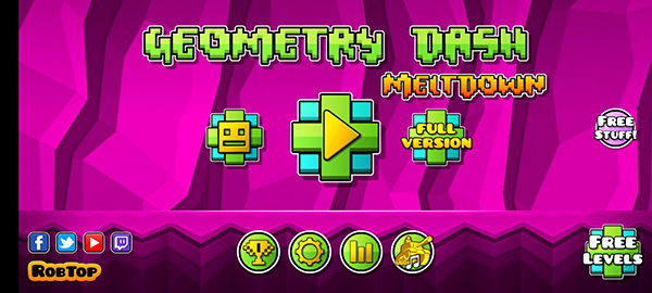 几何冲刺崩溃完整版,英文原名为Geometry Dash Meltdown,属于Geometry Dash系列的重要扩展作品,可视为2.0版本的先行体验。该版本共包含三个精心设计的关卡,每个关卡在视觉风格与节奏编排上都独具特色。音乐方面尤为突出——三首核心曲目(不含菜单及练习模式背景音乐)均由知名电子音乐人F-777创作,曲名与关卡名称一致,玩家可在主流音乐平台轻松找到这些动感十足的配乐。