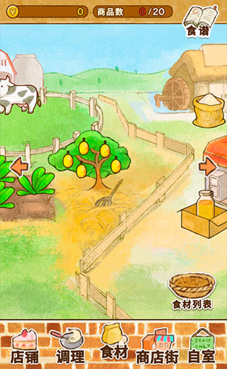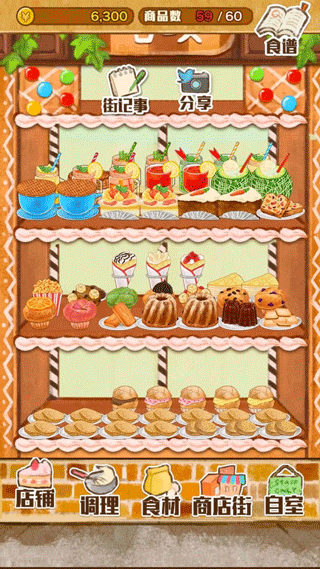 2、点击底部的【商业街】可以采购各种食谱来制作美味的甜品。