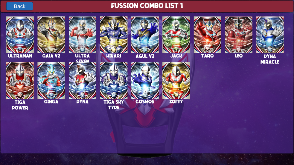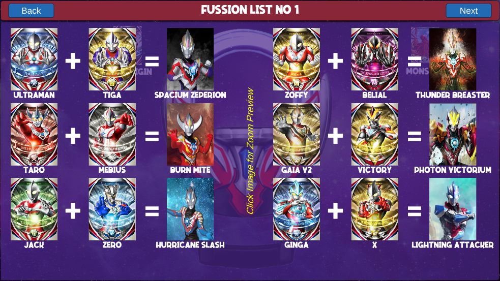 融合列表包含多页组合方案,玩家可依据个人偏好选择心仪的奥特曼组合
