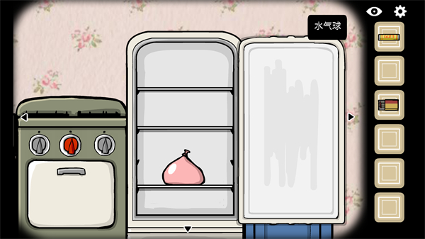 5、先拾取地上的气球,再转至厨房区域,在水槽下方取得火柴。