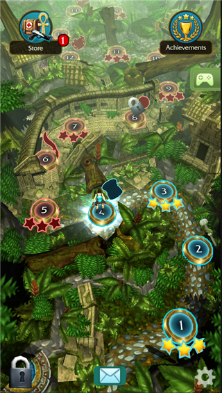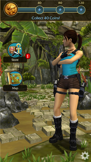2、通过上下左右滑屏操控劳拉疾驰于遗迹之间,一边躲避机关,一边收集考古线索。