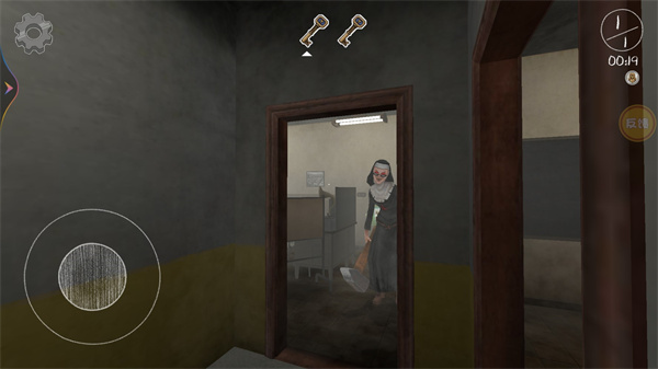 6、一旦发现恐怖奶奶现身,立即寻找掩体躲藏,否则将被其用锤子击倒,导致游戏重置;